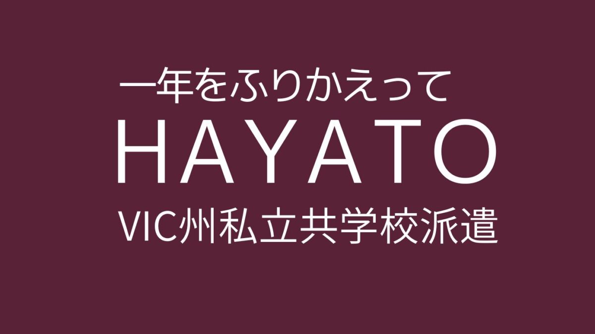 こうして振り返ると、この一年は多くの方々の支えがあってこそ成り立っていたと強く感じます。神戸日豪協会の皆様、学校関係者の方々、事前研修をしてくださった先輩方、そして共に一年を乗り越えた同期の仲間たち。皆さんの存在があったからこそ、私は最後までやり切ることができました。